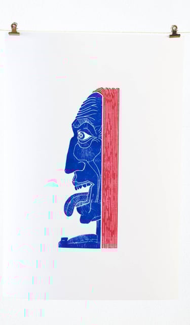Then, the prepared drawing is copied to the linoleum board, and the physical work begins. Long days of carving are spent on each picture, with intermittent test prints for quality control, until the final carved picture is prepared. Finally, the carved linoleum is colored, and after sketching, drawing, copying, carving, and test-printing, the final versions come to life. Each picture is a weeks-long journey, and with each picture I learn something new of this amazing technique.